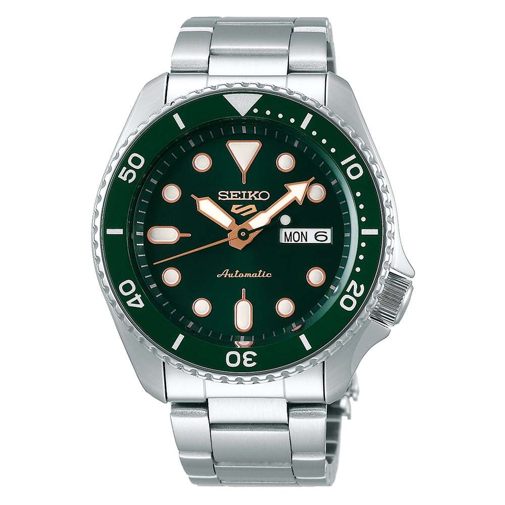 Ανδρικό ρολόι αυτόματο από την εταιρεία SEIKO ,με πράσινο καντράν , ένδειξη ημέρας και ημερομηνίας .