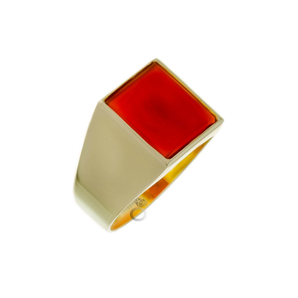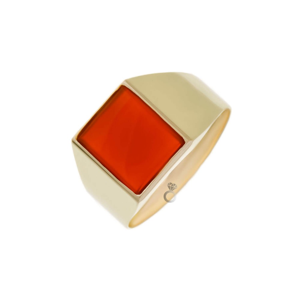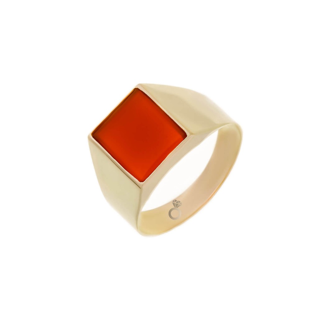 Aνδρικό δαχτυλίδι σε κίτρινο χρυσό 14 καρατίων , με πέτρα κορνεόλη.