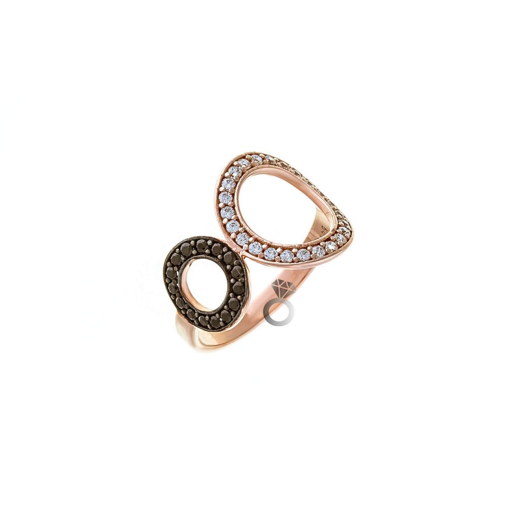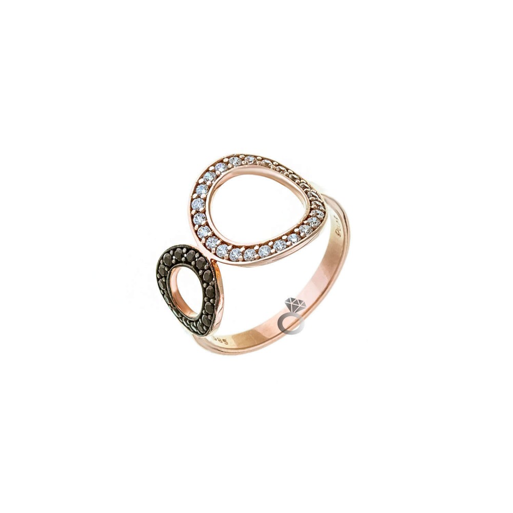 Δαχτυλίδι ροζ χρυσό 14 καρατίων , με λευκά και μαύρα ζιργκόν .