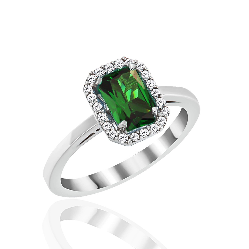Δαχτυλίδι Γυναικείο Λευκόχρυσο με Διαμάντια και Σμαράγδι (L.C)
