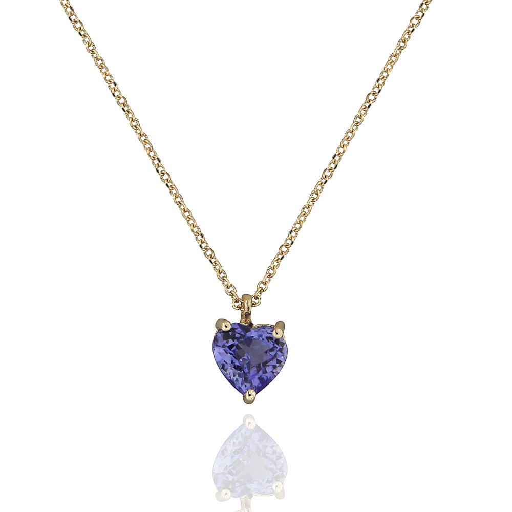 Γυναικείο κολιέ σε σχήμα καρδιάς , 14 καρατίων , με ορυκτή πέτρα Τανζανίτη .
