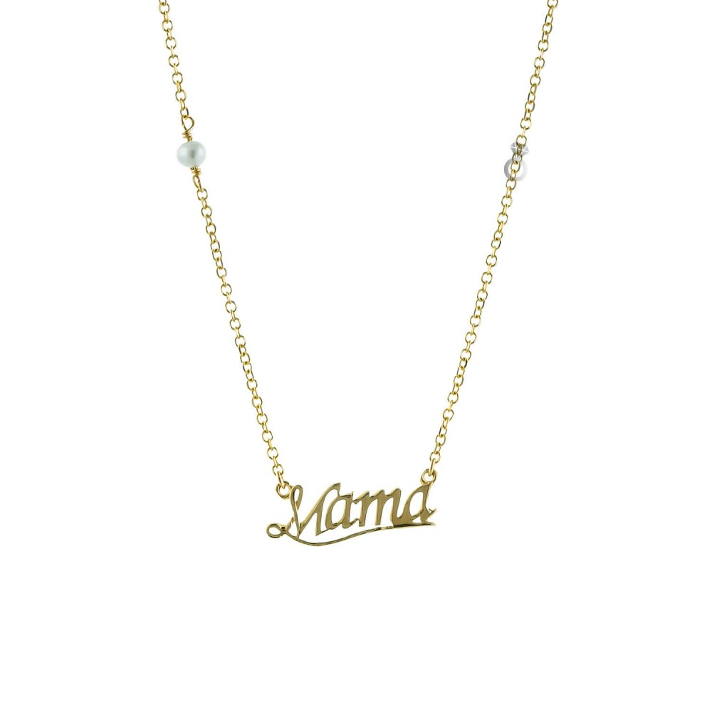 Κολιέ για νέες μητέρες χρυσό 14 καρατίων με λεπτομέρεια μαργαριτάρι στο πλάι.