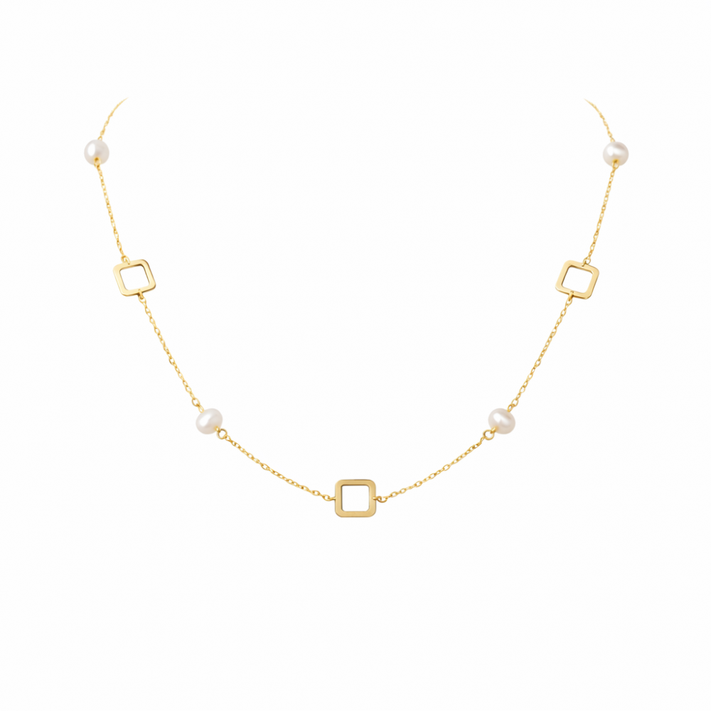 Χρυσό κολιέ με περιμετρικά στοιχεία 9 καρατίων , με φυσικά μαργαριτάρια .