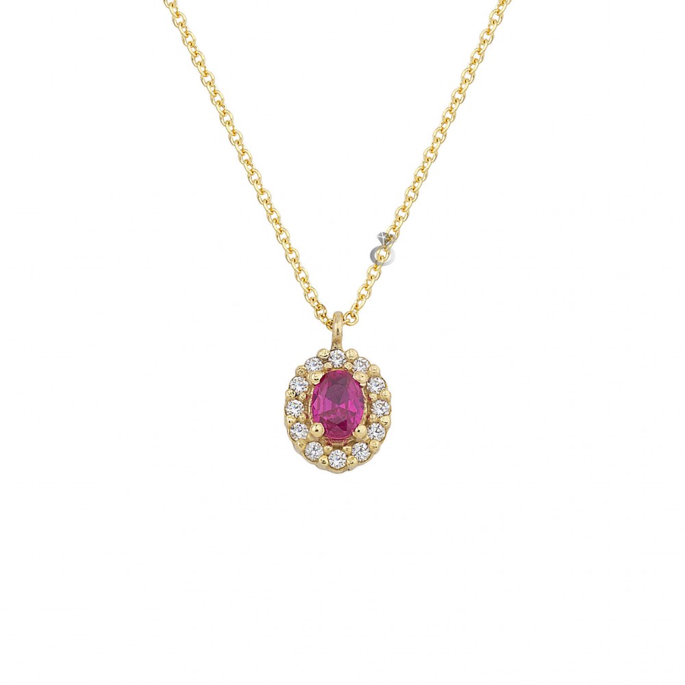 Χρυσό κολιέ ροζέτα 14 καρατίων , με ρουμπίνι και ζιργκόν ,