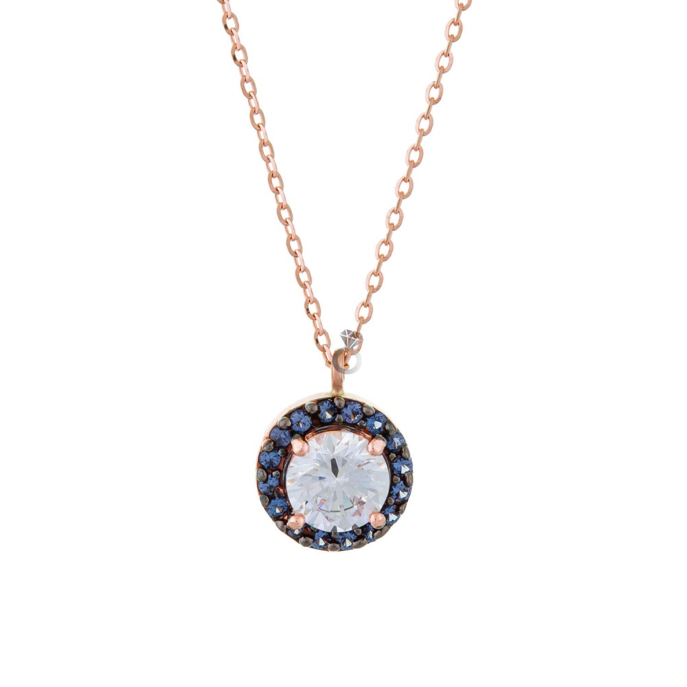 Ροζ Χρυσό κολιέ από την Facad'oro με ζιργκόν σε λευκό και γαλάζιο χρώμα .