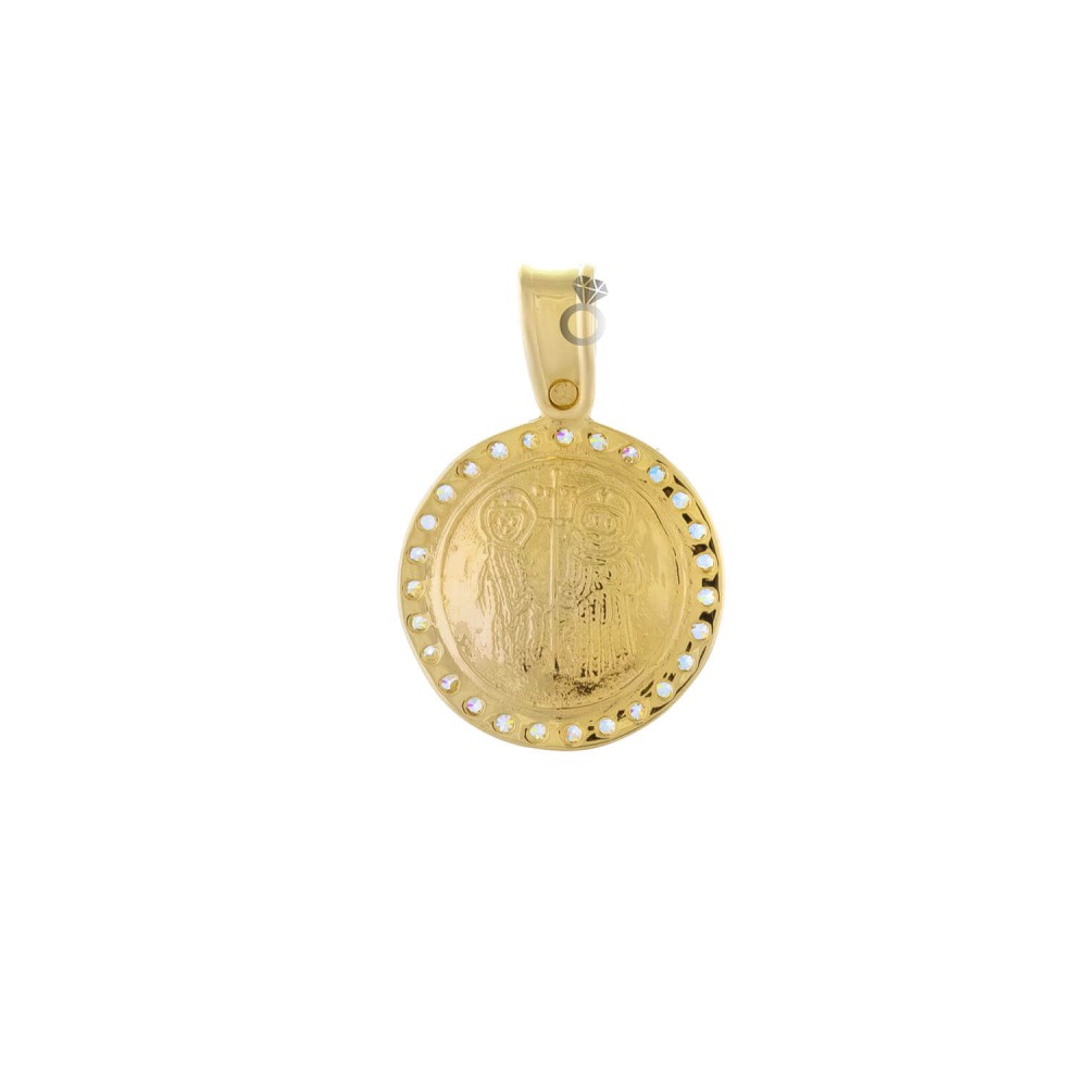 Χρυσό φυλαχτό Κωνσταντινάτο δύο όψεων, συνδυασμός γυαλιστερών & ματ επιφανειών . Στιβαρή μασίφ κατασκευή από χρυσό 14 καρατίων & ζιργκόν .
