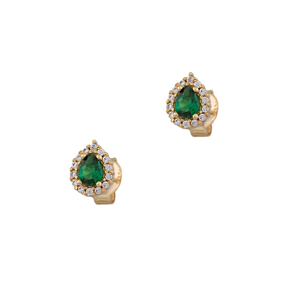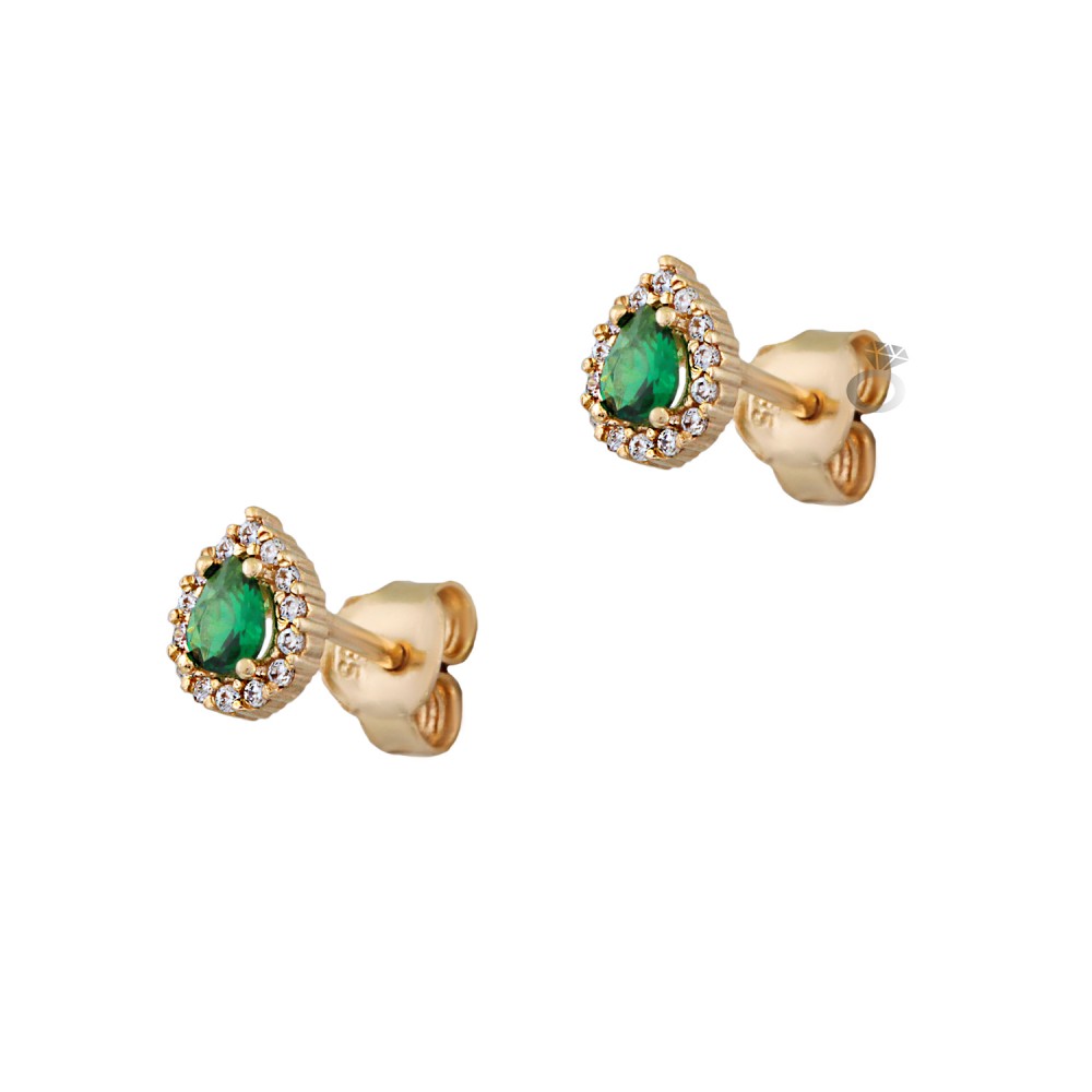 Χρυσά σκουλαρίκια σε σχήμα δάκρυ με πράσινες πέτρες ζιρκόν ,14 καρατίων .
