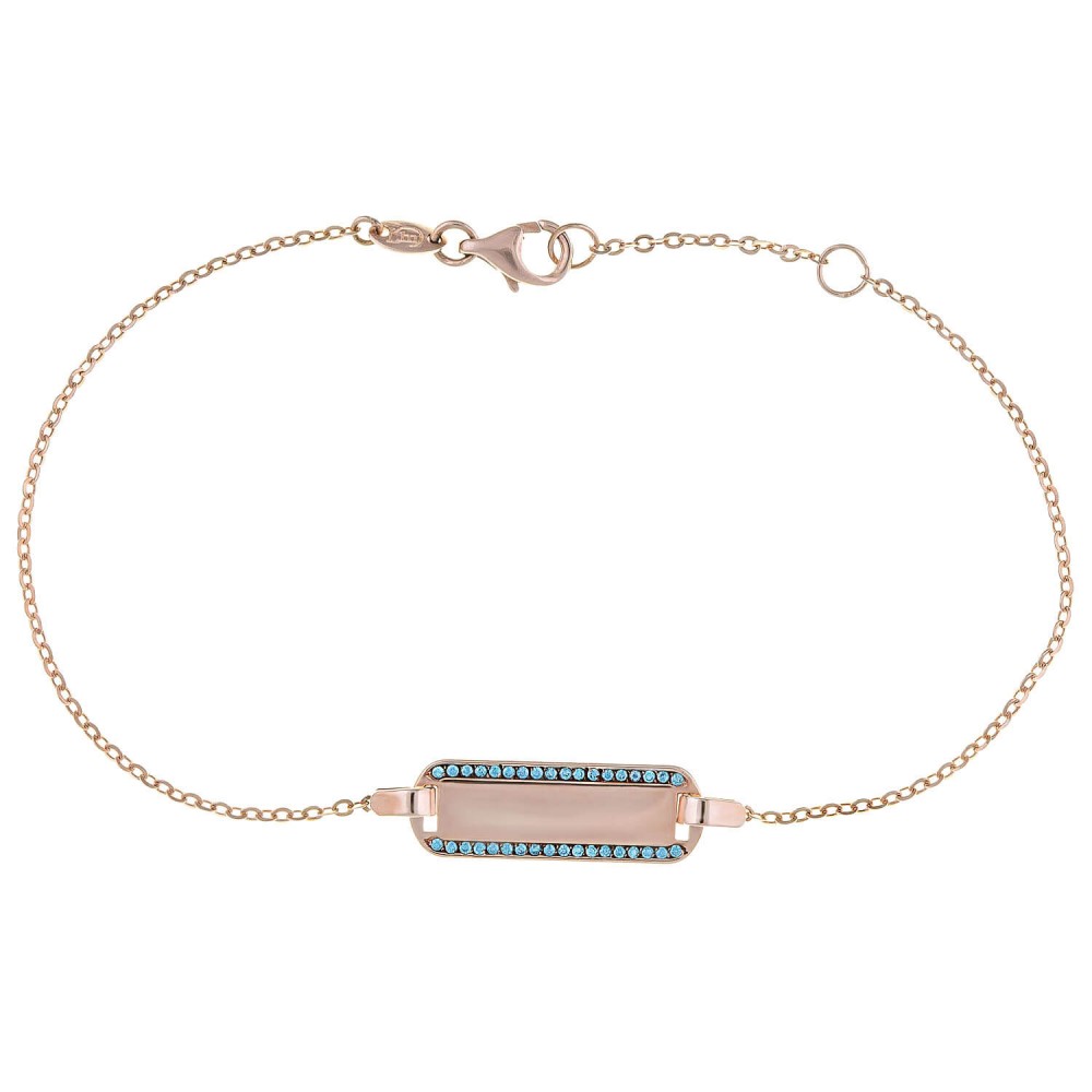 Βραχιόλι ταυτότητα ροζ χρυσό 14 καρατίων με γαλάζια ζιργκόν.