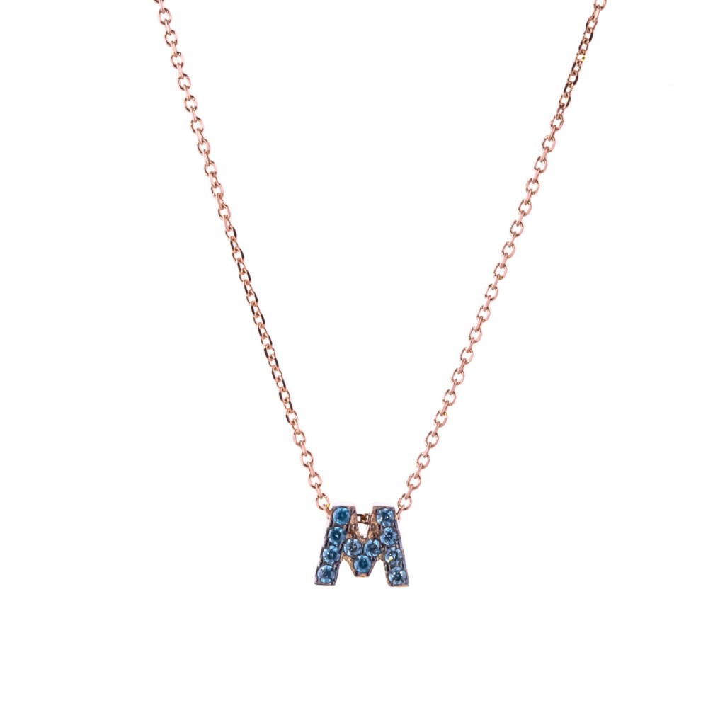 Κολιέ Μονόγραμμα 14 Καρατίων Χρυσό Με Γαλάζια Ζιργκόν . ( Διαθέσιμο κατόπιν παραγγελίας το μονόγραμμα της επιλογής σας. )
