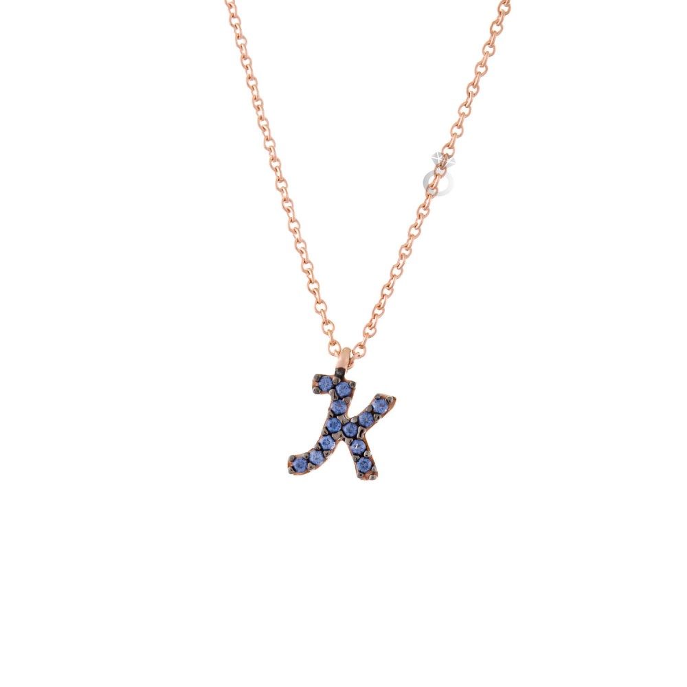 Κολιέ μονόγραμμα , ροζ χρυσό 14 καρατίων με μπλε πέτρες ( Παραγγείλετε το δικό σας μονόγραμμα σε κίτρινο, λευκό ή ροζ χρυσό και με το χρώμα πετρών της αρεσκείας σας )