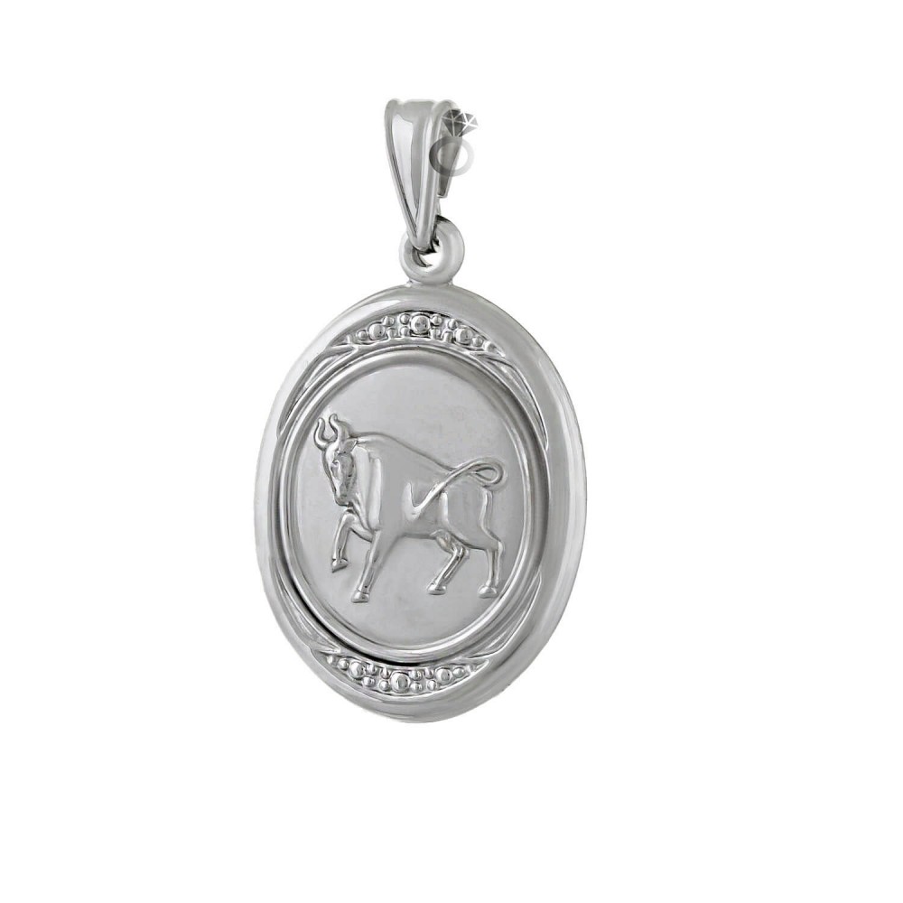 Χρυσό φυλαχτό 9 καρατίων από λευκό χρυσό , με ζώδιο στην πρώτη όψη & κωνσταντινάτο στη δεύτερη όψη .