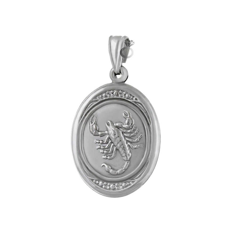 Χρυσό φυλαχτό 9 καρατίων από λευκό χρυσό , με ζώδιο στην πρώτη όψη & κωνσταντινάτο στη δεύτερη όψη .