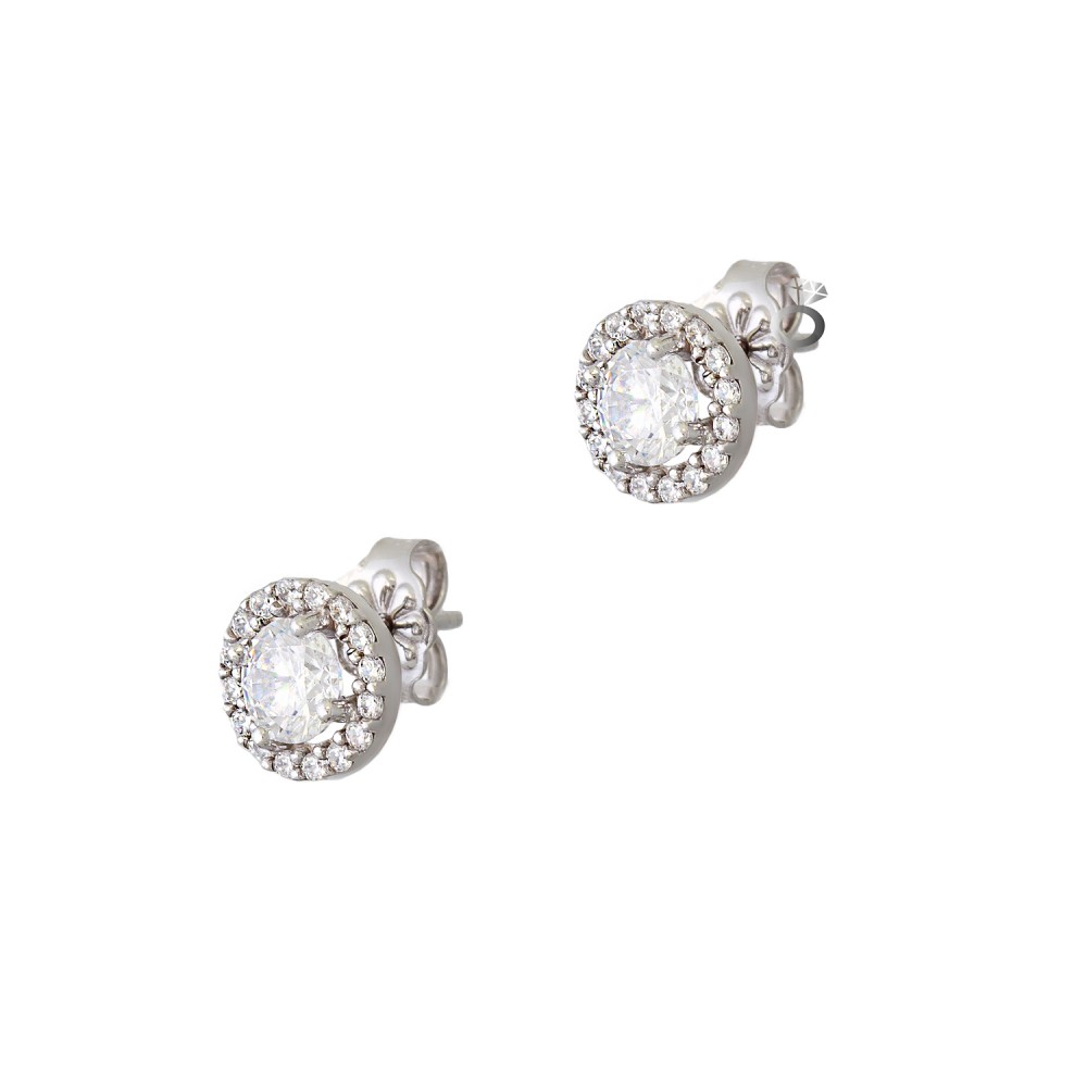Λευκά χρυσά σκουλαρίκια 14 καρατίων , με λευκά ζιργκόν .