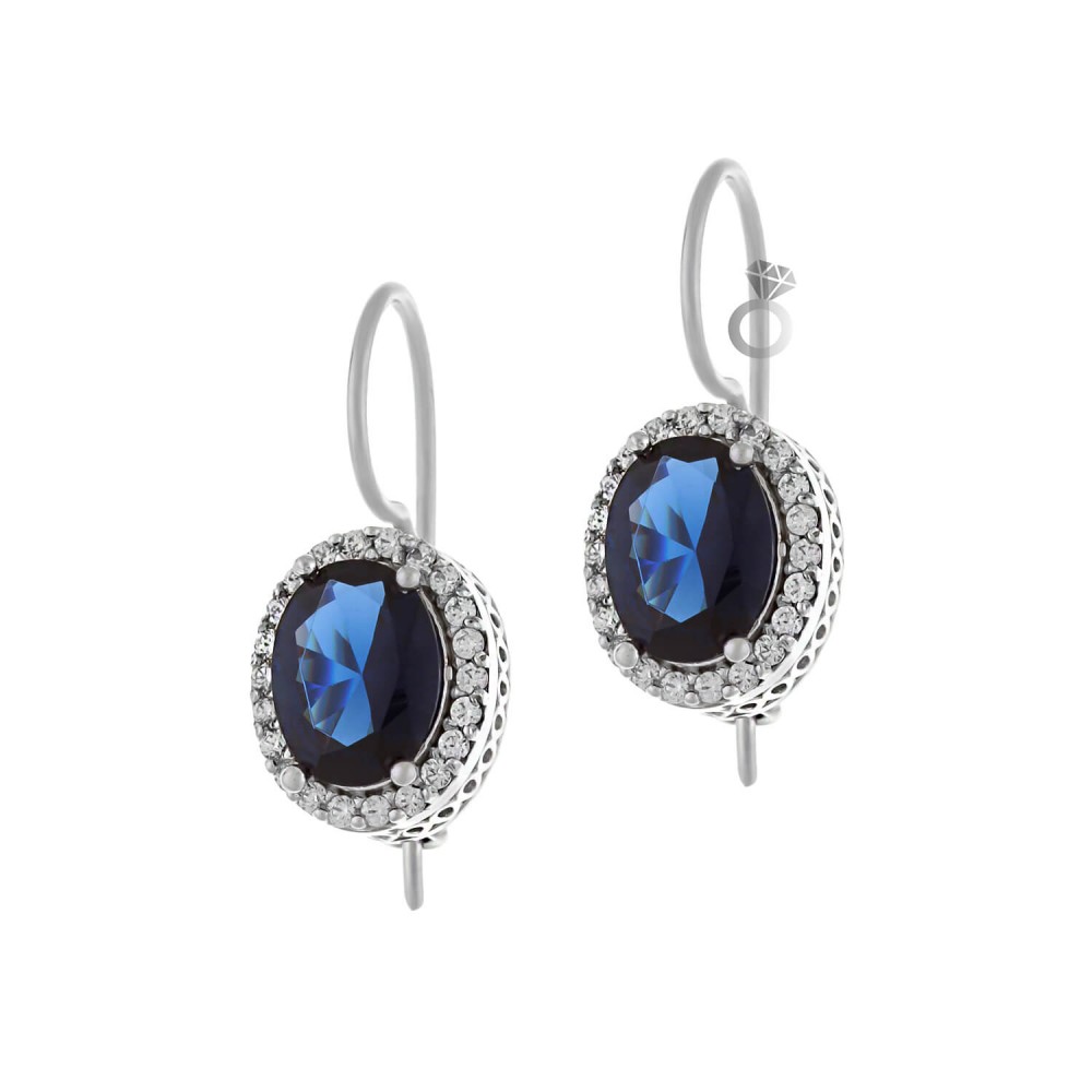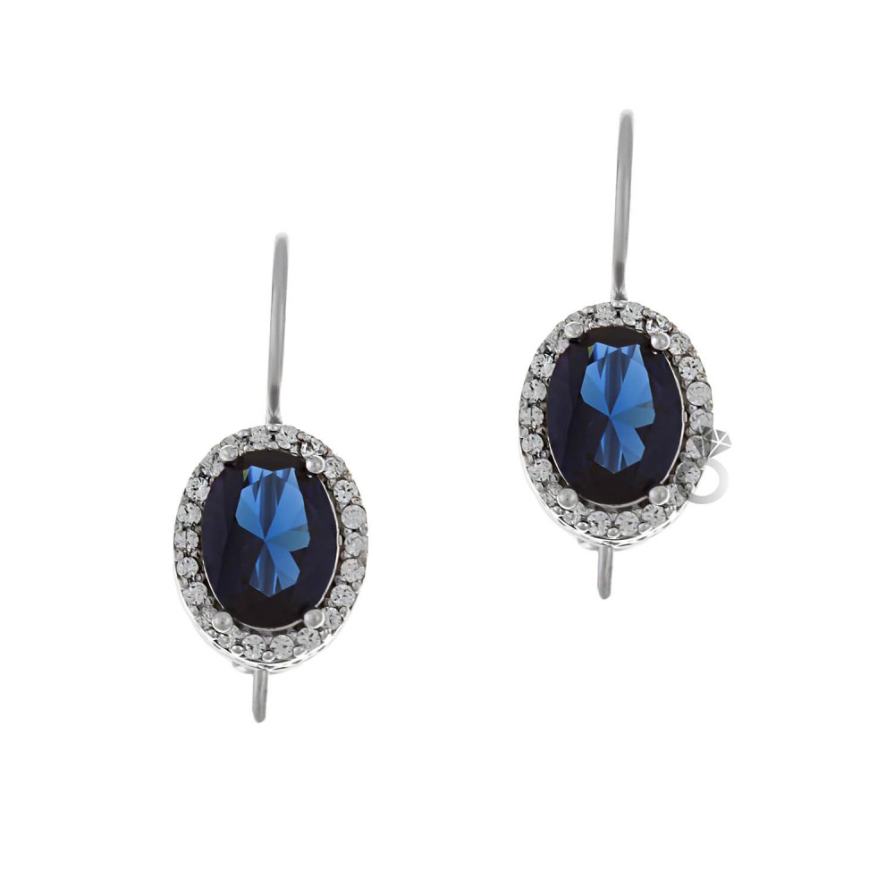 Λευκόχρυσα σκουλαρίκια ,14 καρατίων , ροζέτες σε οβάλ σχήμα με λευκά και μπλε ζιργκόν . Ένα σχέδιο με διαχρονική , κλασσική ομορφιά , ιδανικό για ιδιαίτερες περιστάσεις όπως και για νύφες .