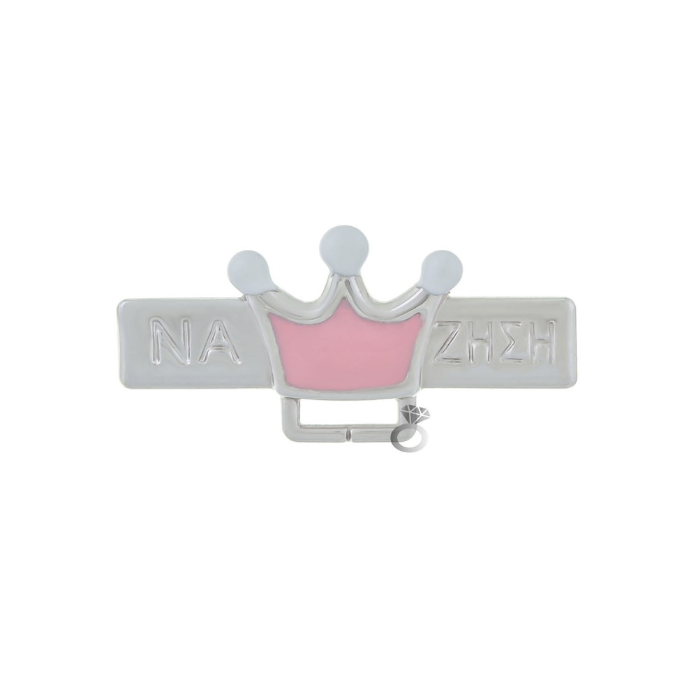 Παραμάνα 9 καρατίων λευκόχρυση , με την επιγραφή ''Να Ζήση'' & κορώνα . ( Το συγκεκριμένο προϊόν πωλείται μόνο συνδυαστικά με κωνσταντινάτο )