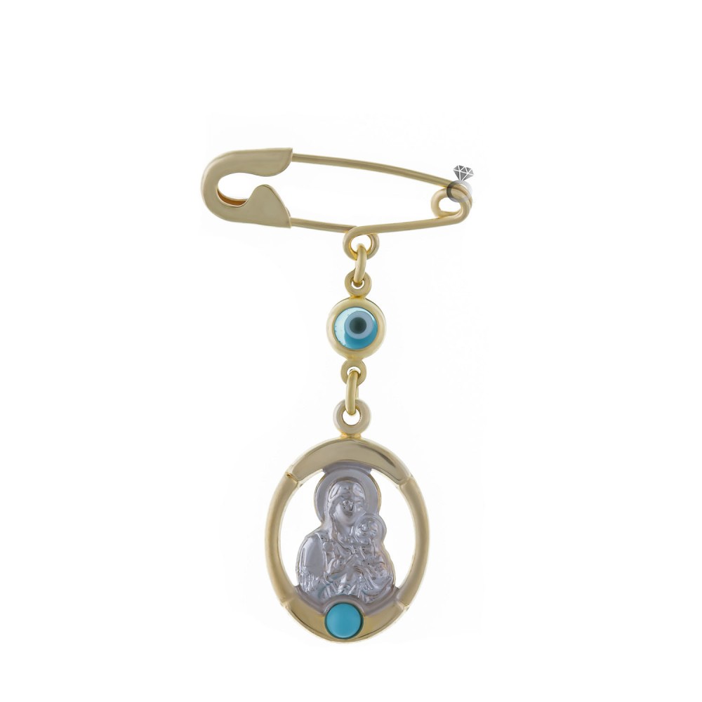 Χρυσή παραμάνα με λεπτομέρεια λευκόχρυσου στην παναγία , 9 καρατίων , με τυρκουάζ & μάτι.