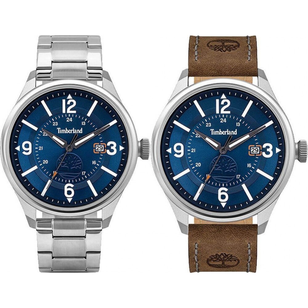 Ανδρικό ρολόι κατασκευασμένο από τη Timberland. Κάσα κατασκευασμένη από ανοξείδωτο ατσάλι, στο χρώμα του ατσαλιού , ενώ το καντράν είναι σε μπλε χρώμα, με λευκούς δείκτες και λευκά σημεία. Δώρο λουράκι, από δέρμα, υψηλής ποιότητας σε καφέ χρώμα.