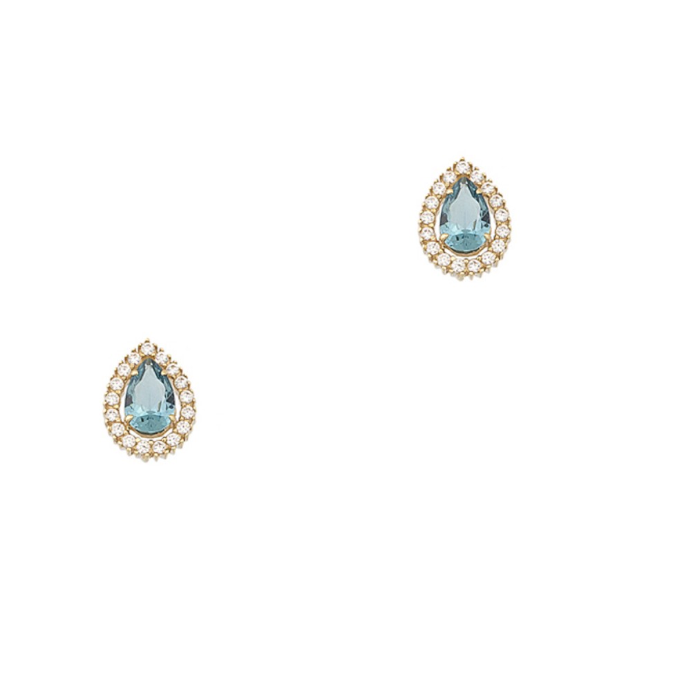 Χρυσά σκουλαρίκια σε σχήμα δάκρυ με πέτρες ζιρκόν σε απόχρωση london blue topaz ,14 καρατίων .