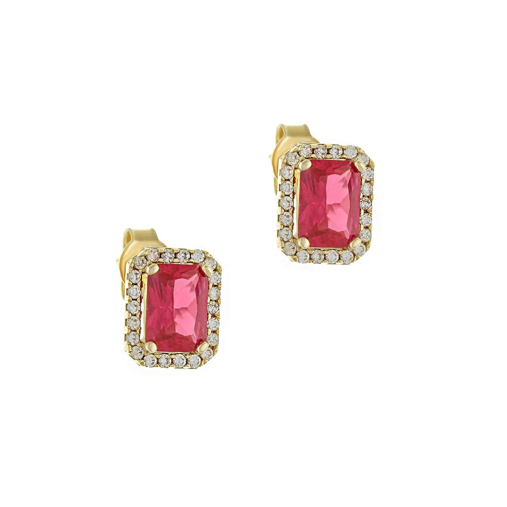 Χρυσά σκουλαρίκια 14 καρατίων με ζιργκόν σε κόκκινο και λευκό χρώμα .
