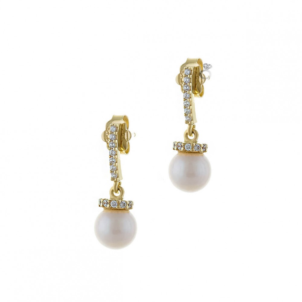 Χρυσά σκουλαρίκια 14 καρατίων , με μαργαριτάρια και ζιργκόν.