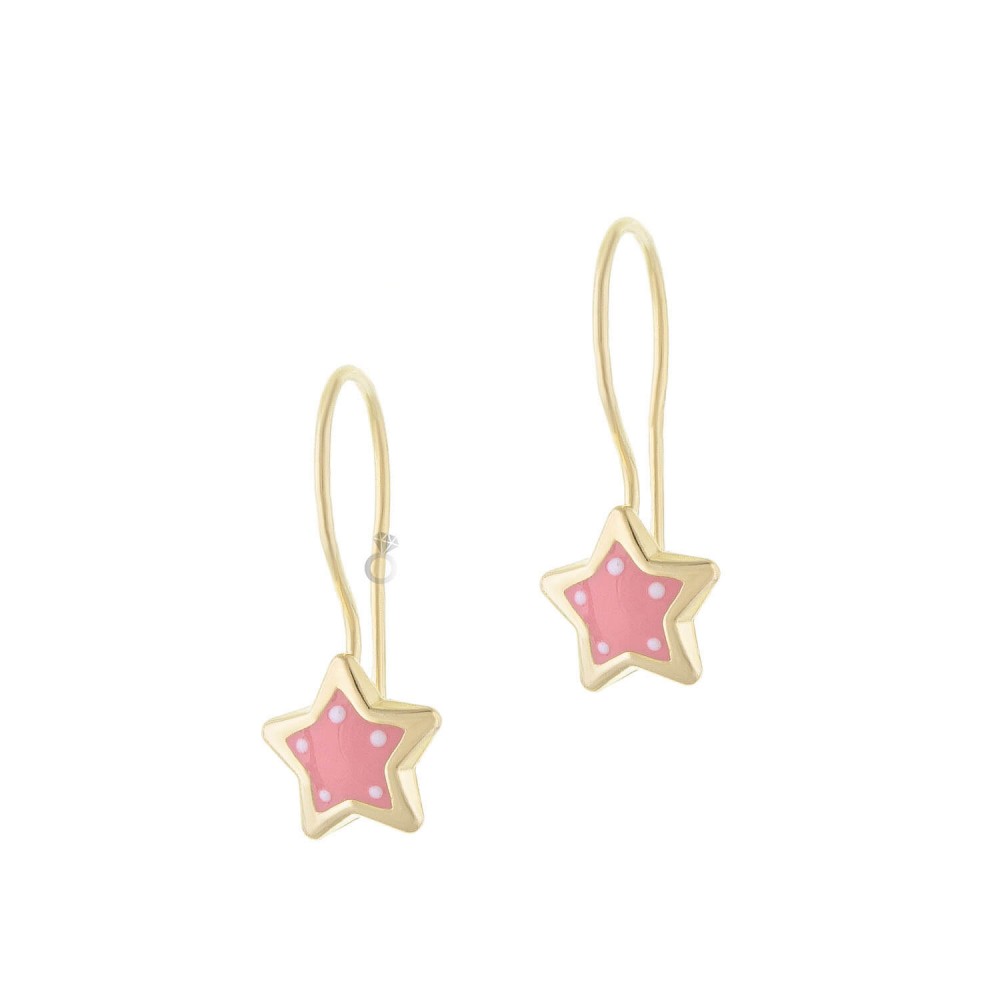 Κρεμαστά παιδικά σκουλαρίκια, 14 καρατίων με σμάλτο σε ροζ χρώμα .