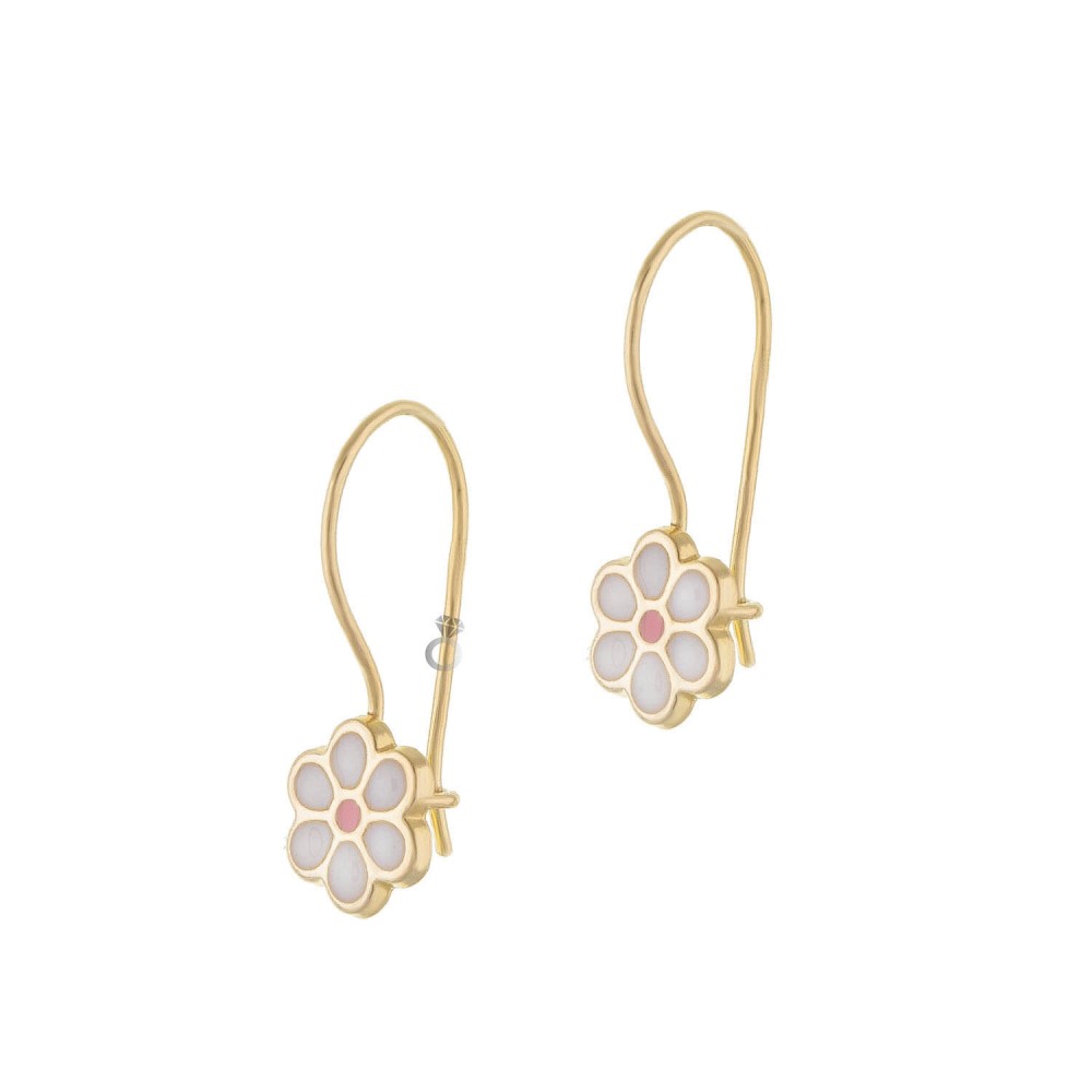 Κρεμαστά χρυσά σκουλαρίκια, 14 καρατίων , με σμάλτο σε λευκό και ροζ χρώμα.