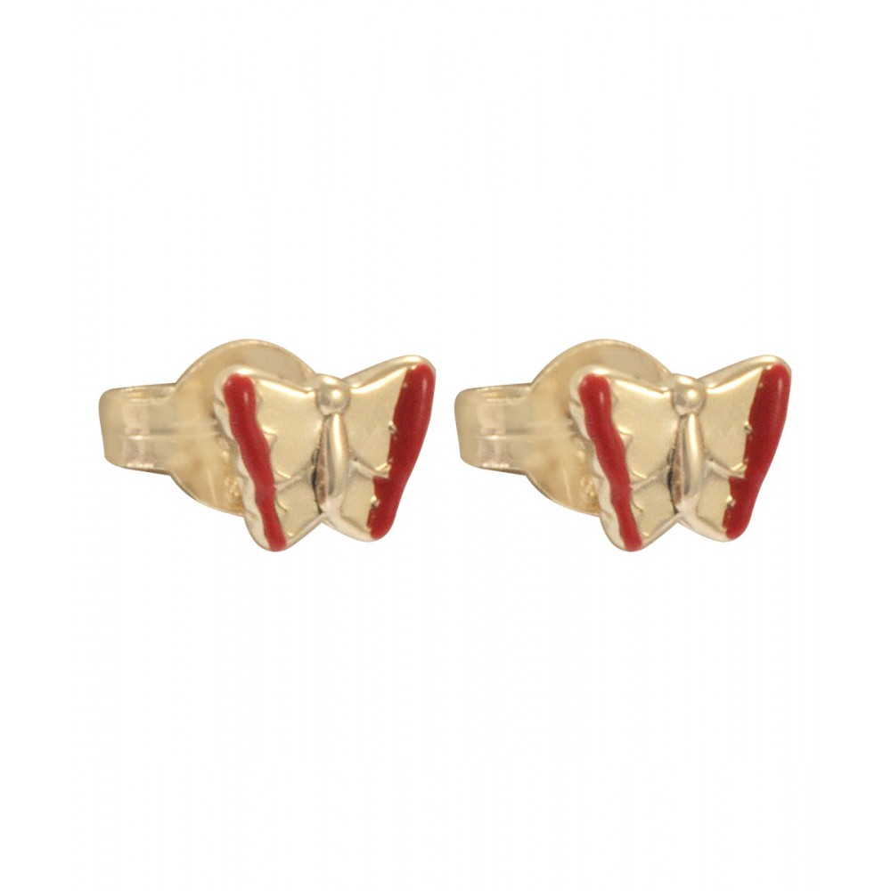 Παιδικά χρυσά σκουλαρίκια πεταλούδες , 9 καρατίων , με σμάλτο .