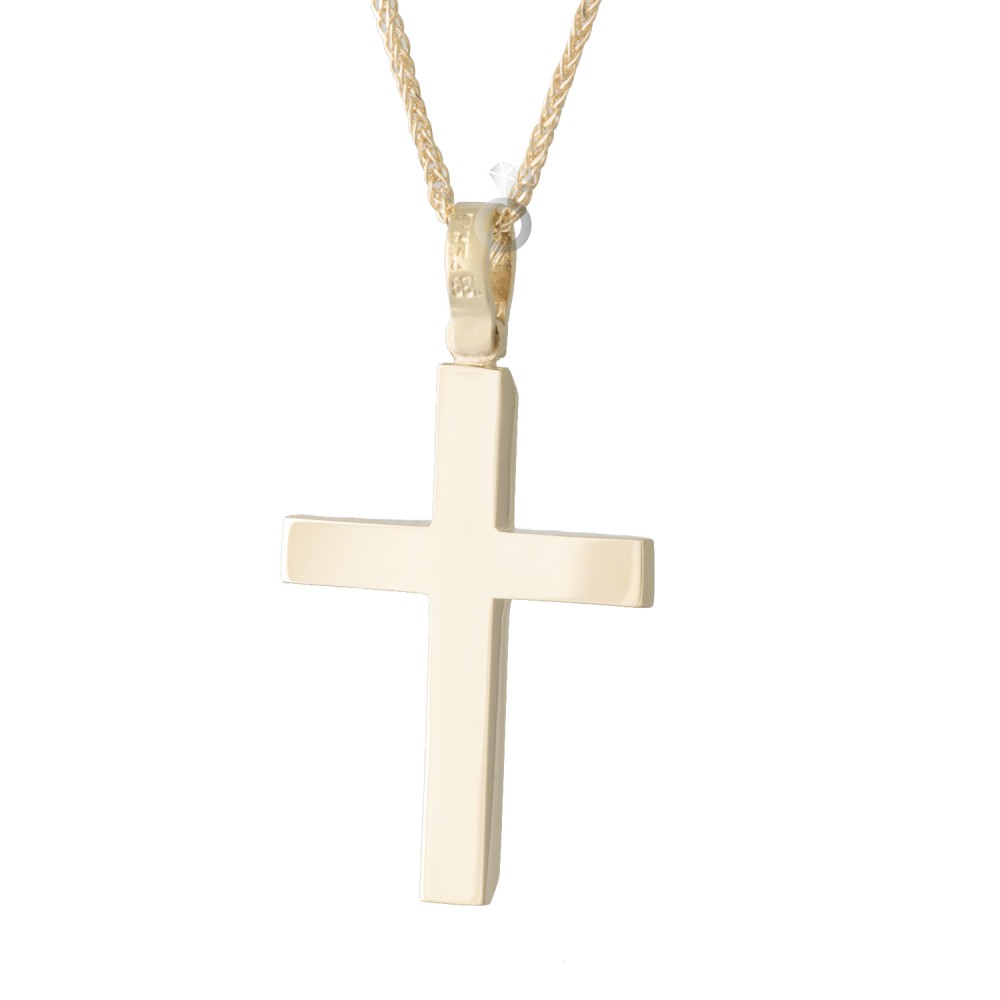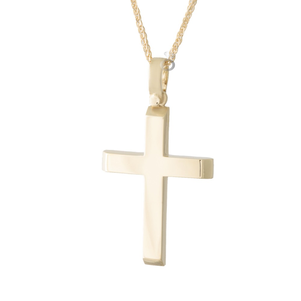 Ένας πανέμορφος κλασσικός ανδρικός σταυρός σε κίτρινο χρυσό σε απόλυτες γραμμές.
