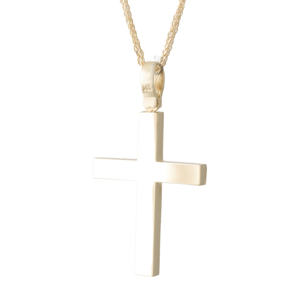 Ένας πανέμορφος κλασσικός ανδρικός σταυρός σε κίτρινο χρυσό σε απόλυτες γραμμές.