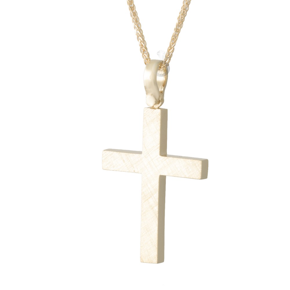 Ένας πανέμορφος κλασσικός ανδρικός σταυρός σε κίτρινο χρυσό σε απόλυτες γραμμές.