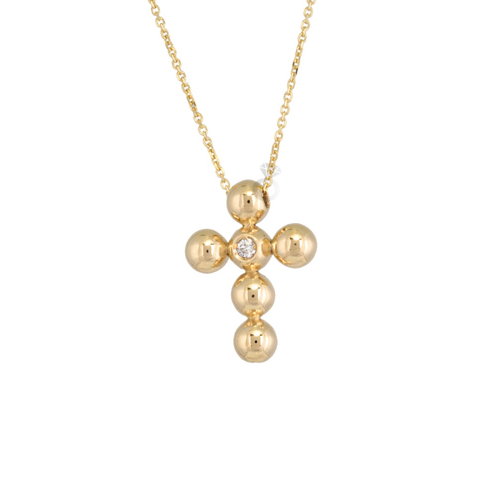 Χρυσό κολιέ Σταυρός με διαμάντι