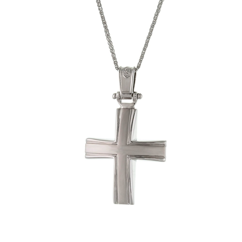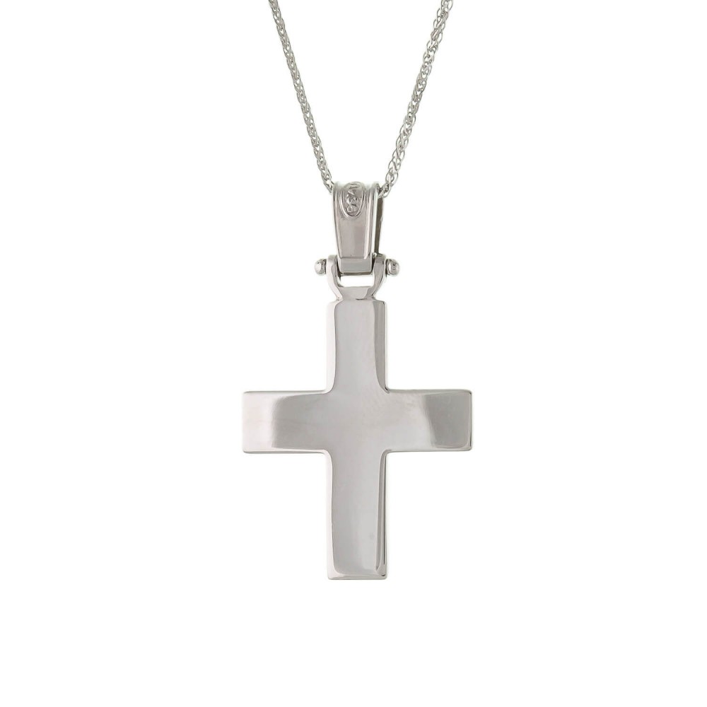 Λευκόχρυσος ανδρικός σταυρός 14 καρατίων μασίφ με ματ και λουστρέ λεπτομέρειες.