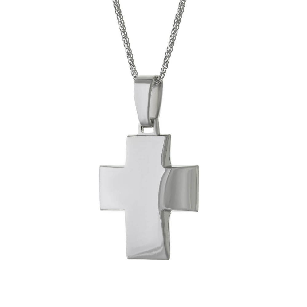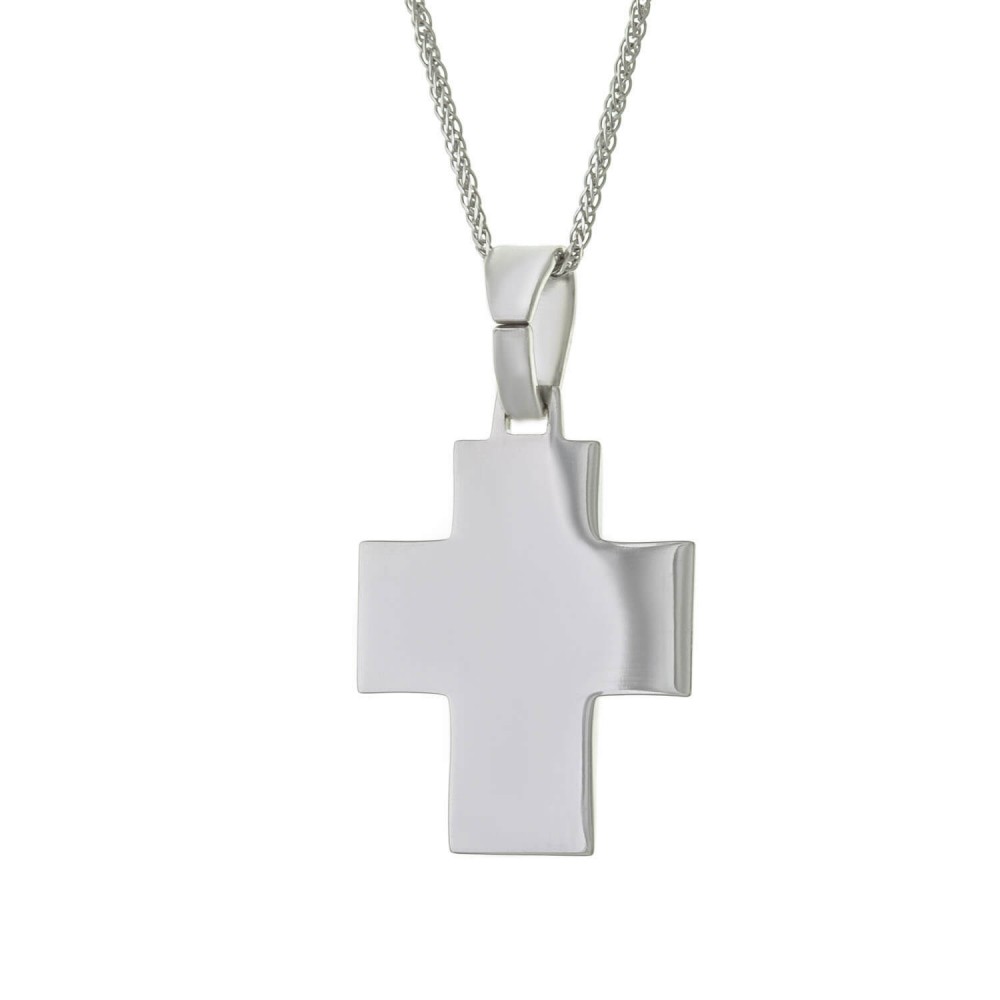 Μασίφ ανδρικός σταυρός , κλασσικός με γυαλιστερές επιφάνειες , λευκόχρυσος 14 καρατίων .