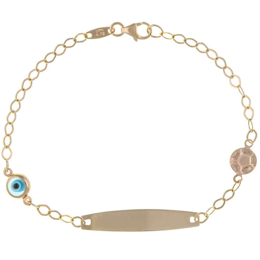Παιδική ταυτότητα χρυσή 9 καρατίων με μάτι και μπάλα.