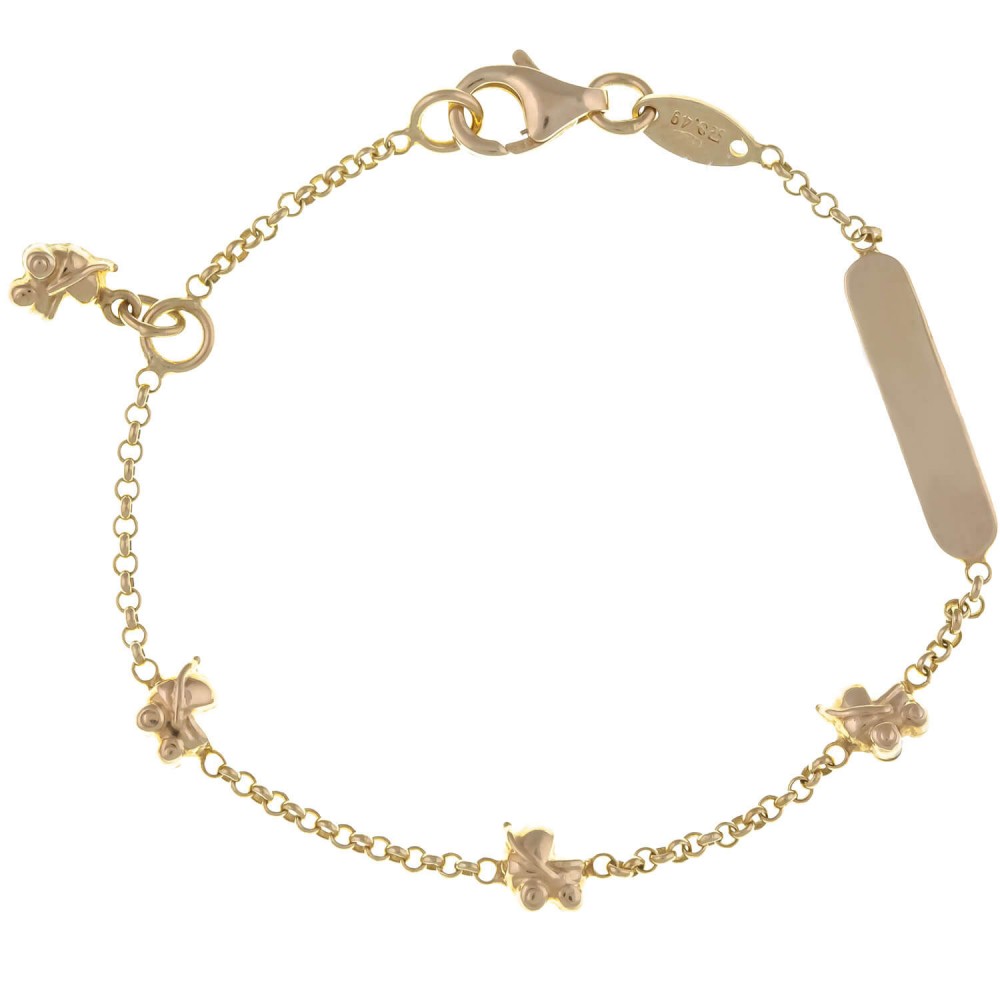 Χρυσό βραχιόλι 14 καρατίων με ταυτότητα και παιδικά καροτσάκια .