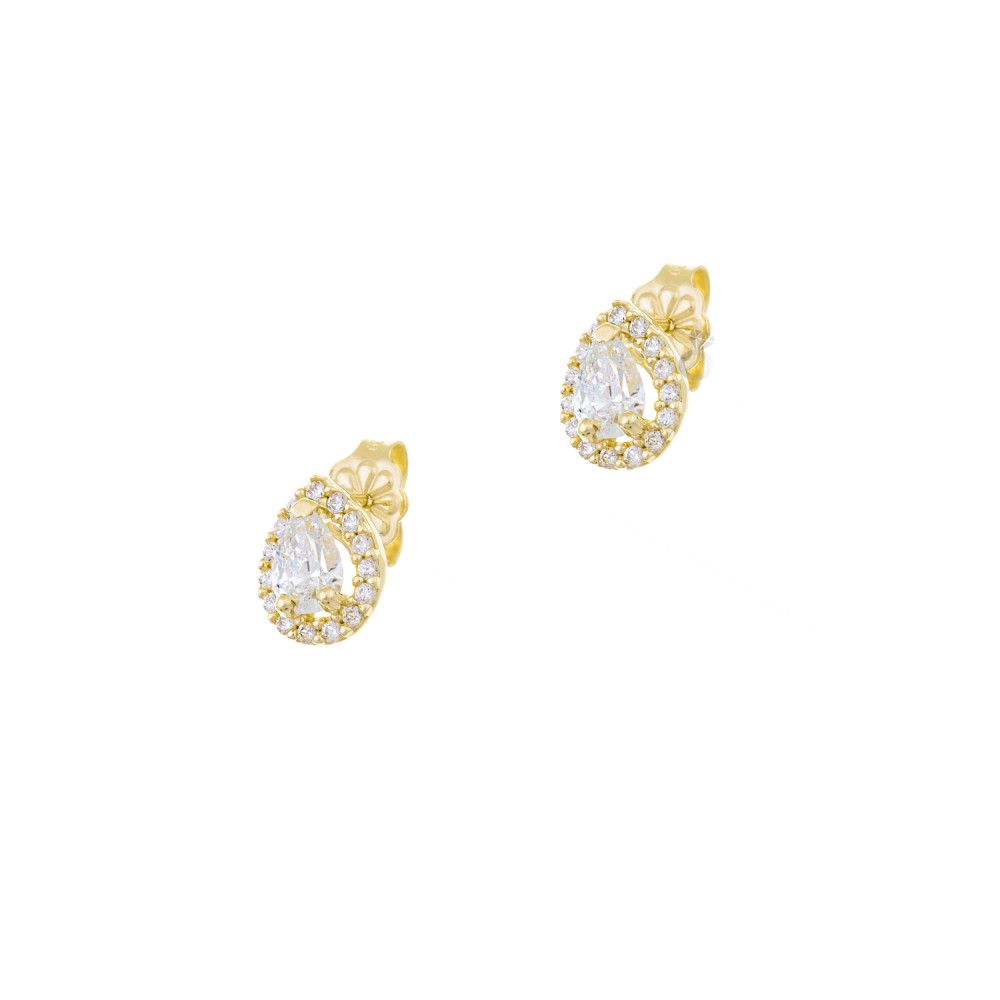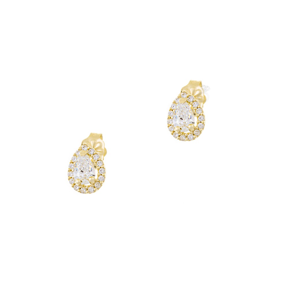 Χρυσά σκουλαρίκια 14 καρατίων , με λευκά ζιργκόν . Σκουλαρίκια για πολύ εντυπωσιακές εμφανίσεις , ιδανικά για νύφες .