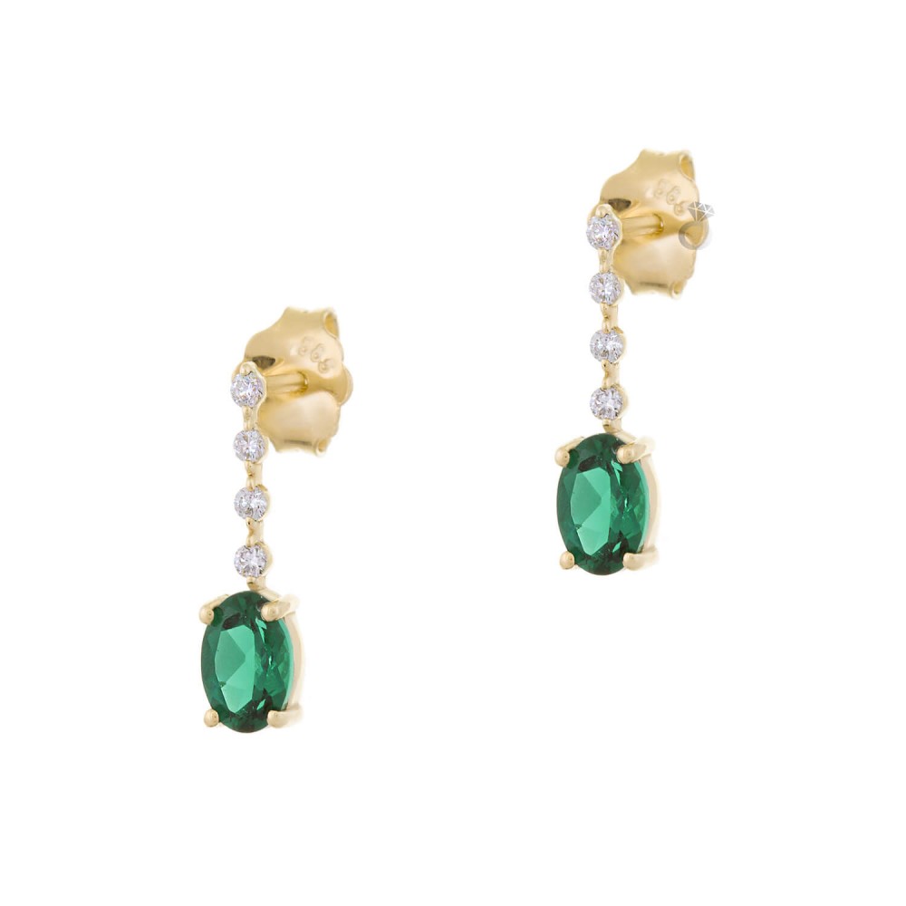 Χρυσά σκουλαρίκια 14 καρατίων με σμαράγδια 1,1 Ct και Διαμάντια κοπής brilliant .