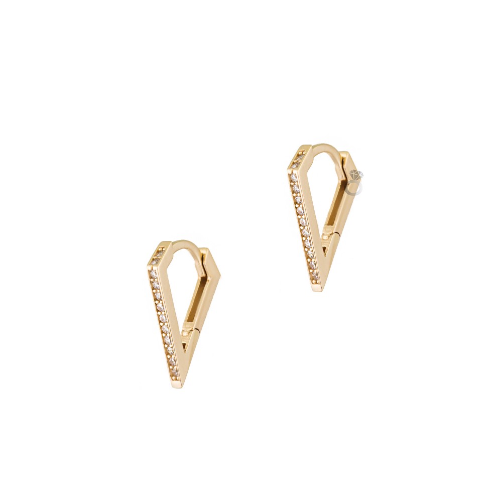 Χρυσά σκουλαρίκια 14 καρατίων δύο όψεων , με λευκά ζιργκόν από τη μία πλευρά και χωρίς πέτρες από την δεύτερη . Σκουλαρίκια για πολύ εντυπωσιακές εμφανίσεις , ιδανικά για νύφες .