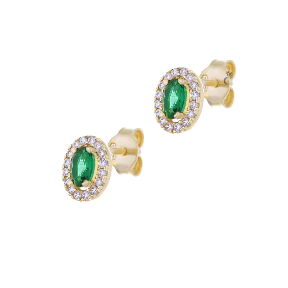 Σκουλαρίκια Χρυσά με πράσινη πέτρα