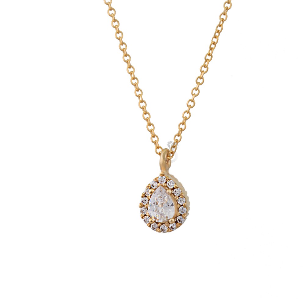 Κολιέ ροζέτα σε σχήμα δάκρυ , χρυσός 14 καρατίων , με λευκά ζιρκόν .